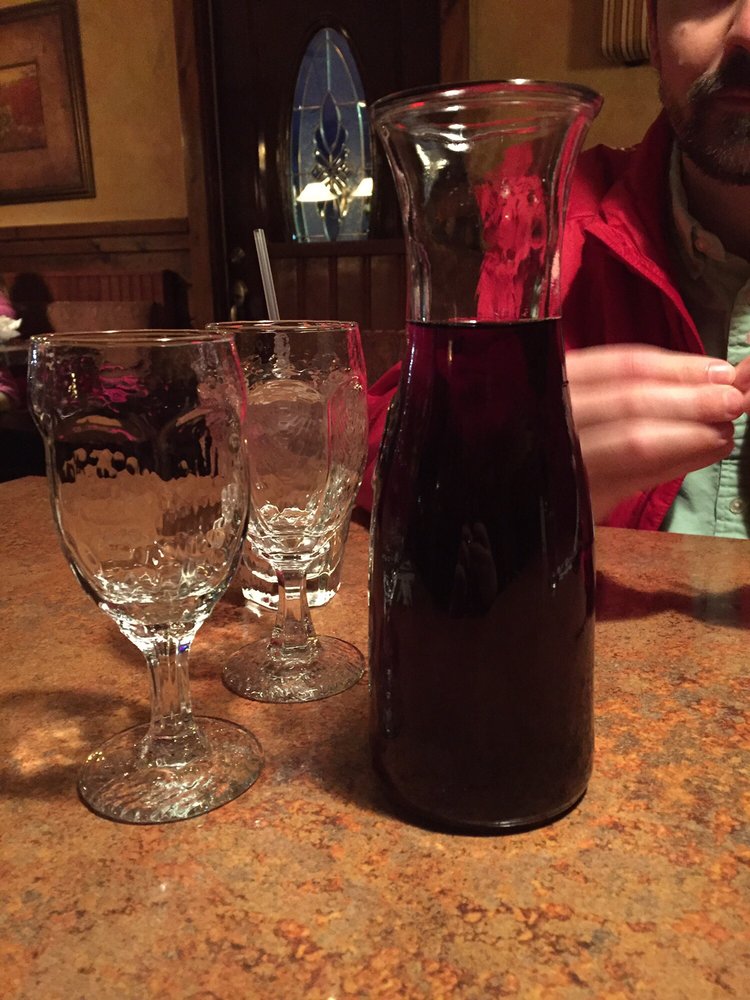 Begin by sharing an antipasto, then enjoy a generous platter of lasagna & your choice of spaghetti or ziti, smothered with meat sauce. Included is a side order of two meatballs & two Italian sausages, & we offer a half carafe of house wine or two drafts of beer, all for