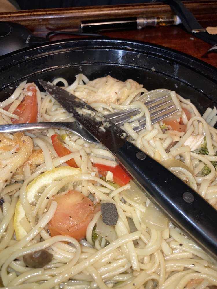 Fresh mushrooms, green peppers, tomatoes, onions & broccoli sautéed in a light garlic butter sauce, served over linguini